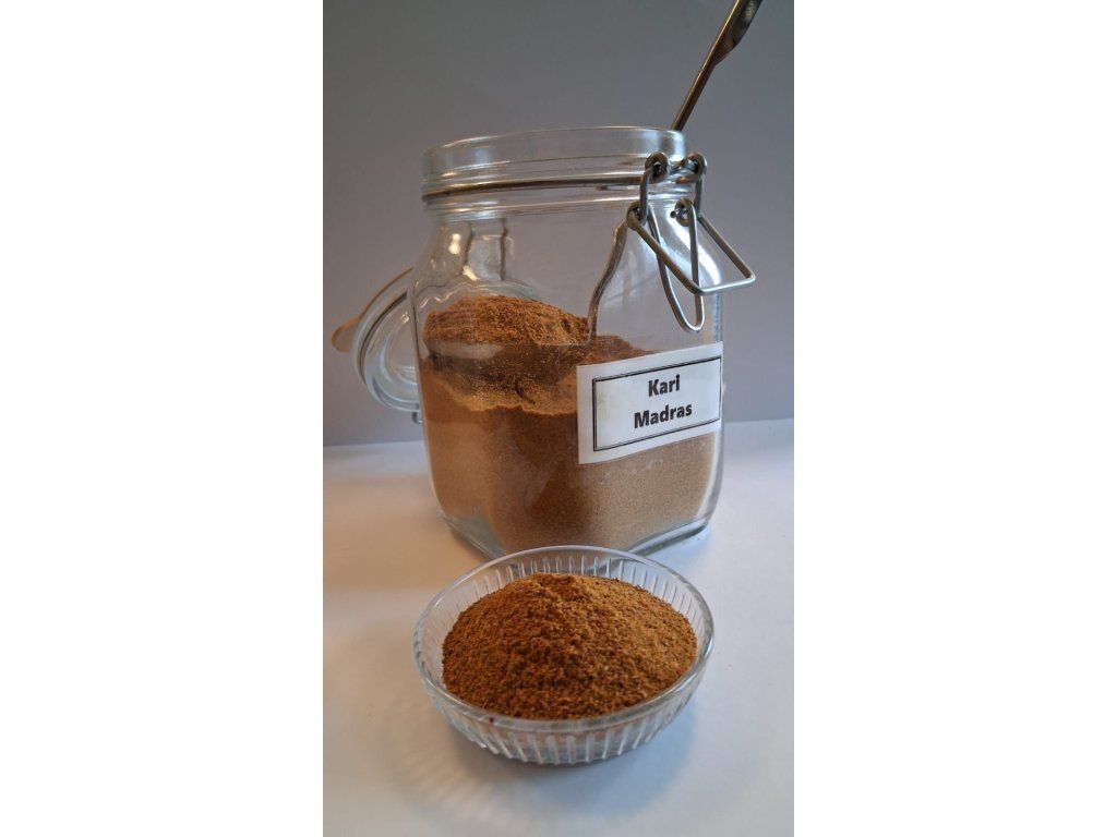 Kari Madras je tradiční indická směs koření pocházející z oblasti jižní Indie. Je známá svou sytě žlutou barvou, bohatým aroma a středně pikantní chutí, která dodá jídlům nezaměnitelný exotický charakter.