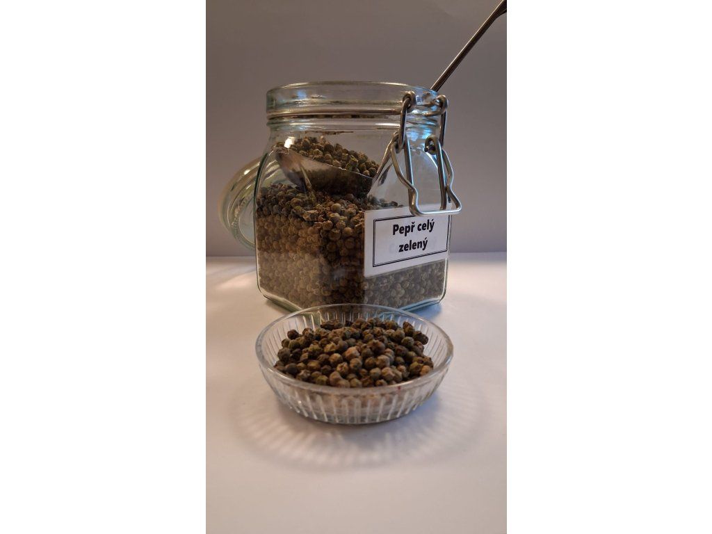 Vzhled: drobná, zelená zrnka, hladká a méně tvrdá než černý pepř